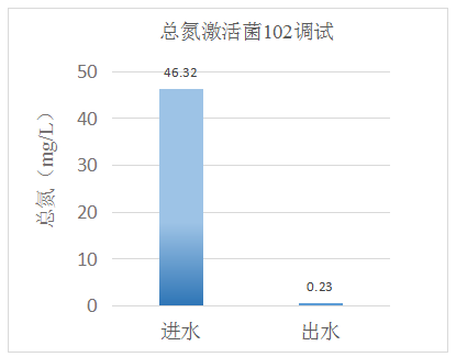 我司技術人員通過現場評估,發現生化系統總氮去除效率有限,生化溫度30℃,系統內有效生物量不足,導致系統抗沖擊能力差,出水總氮難以達標。通過技術人員現場投加復合碳源101和激活菌102,再配合現場生化系統運行條件控制、優化,達到如下效果: